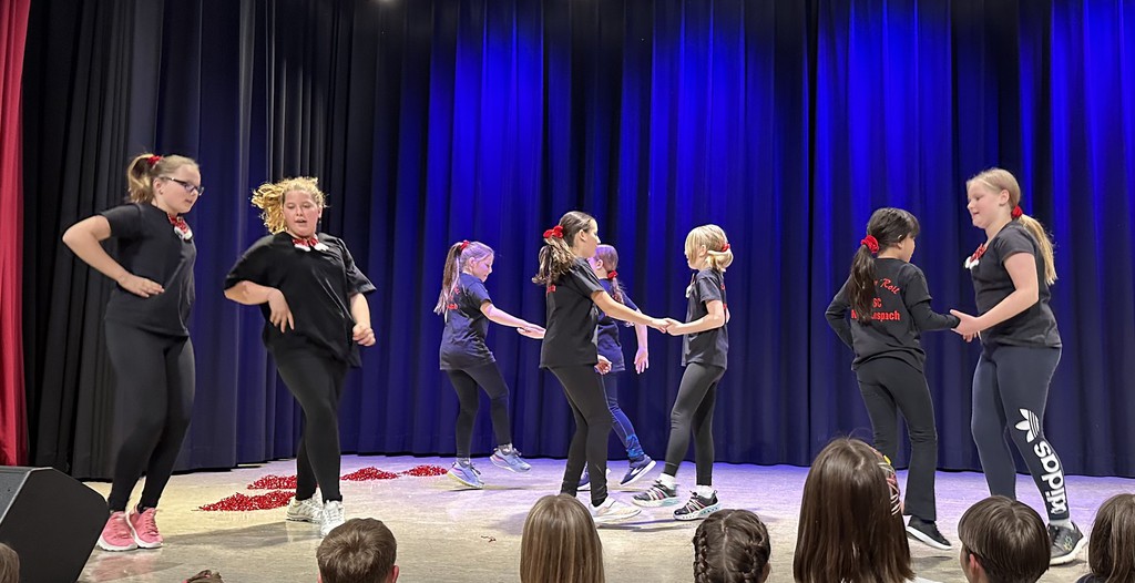 16 Teens füllten nun die Bühne. Sie zeigten eine schwungvolle Choreographie zu den Liedern „Unsichtbar“ und „The room“. Die anschließend überreichten Urkunden, wie auch bei den Kinder Latein, reichten von Bronze bis zum Gold-Abzeichen.